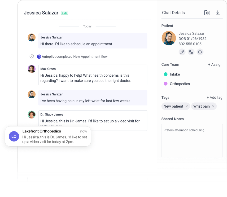 Automate the simple communication workflows or deliver a high-touch experience for the patient conversations that need you.