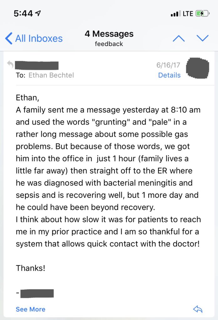 It was from a pediatrician on that I had spoken to a few times in the past. I was expecting a support question or a feature request, but this email was different: