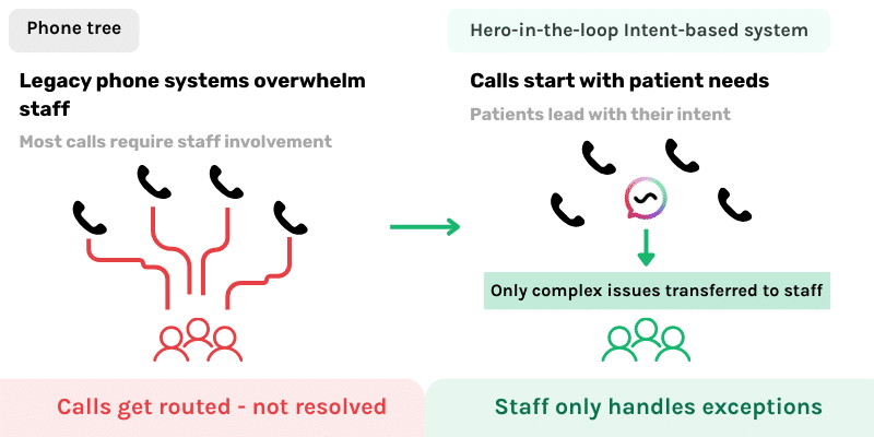 Meanwhile, front desk and clinical teams are still buried in poorly-triaged calls, growing voicemail logs, and constant follow-up work. Nurses spend time transcribing messages. Patients wait on responses. Staff remain stretched thin.
